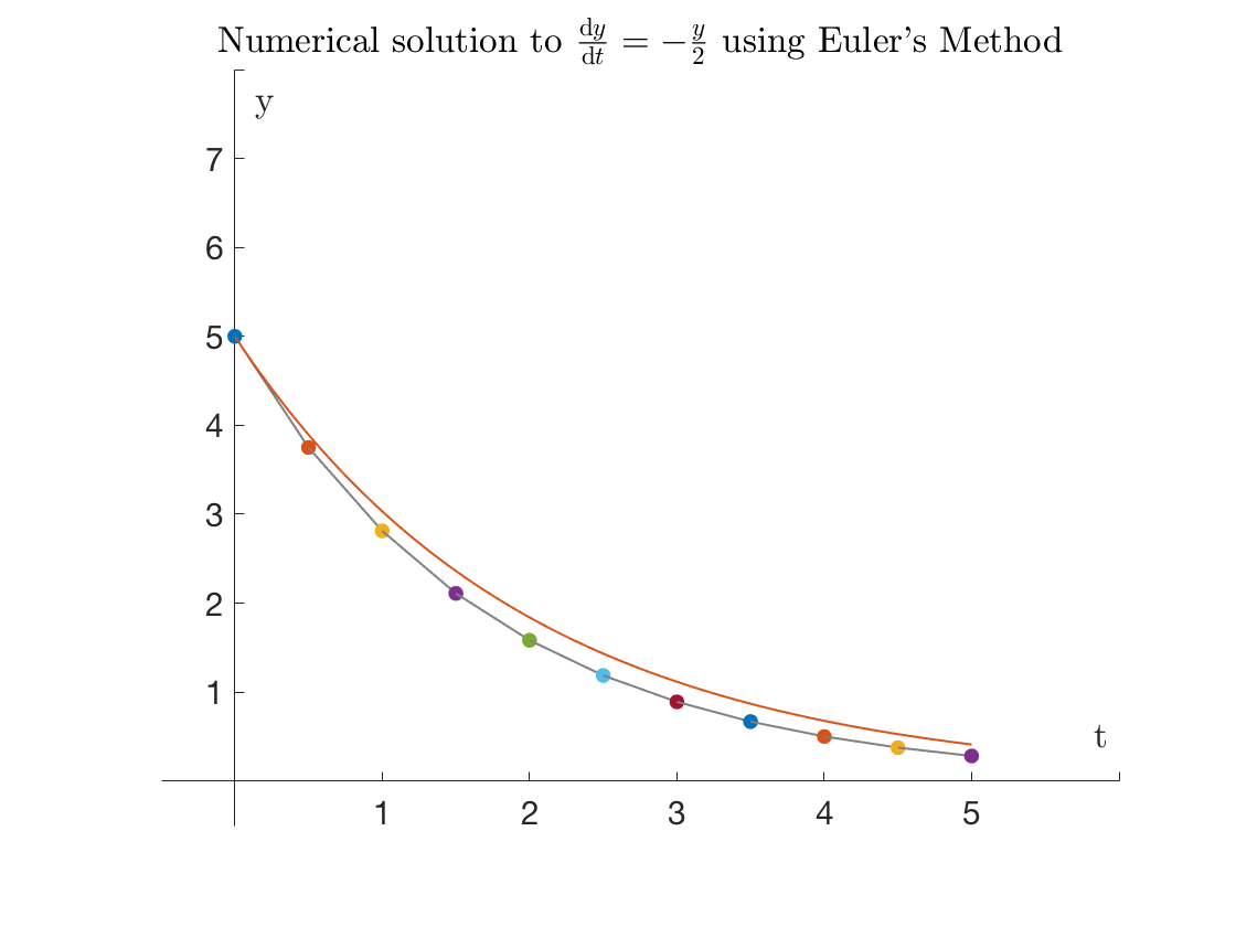 The main value in Euler’s method is that it illustrates an important principle. Other, more reliable, methods use the same basic idea to find numerical solutions to differential equations, but use more information about to move from one point to the next.