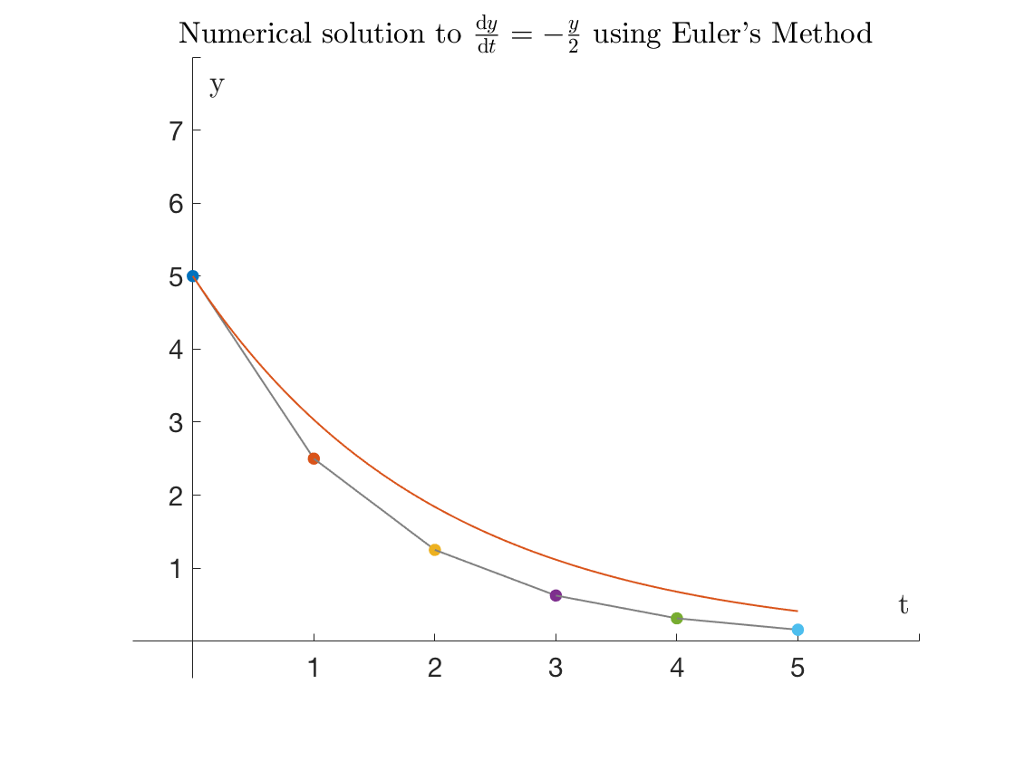Now we can use the same method to find from , and so on. So the Euler Method approximates the solution using
